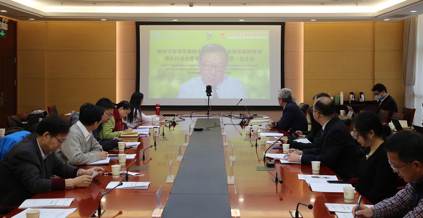 12月17日,全球环境基金(GEF)七期面向可持续发展的中国农业生态系统创新性转型项目启动会暨项目指导委员会第一次会议在北京召开。农业农村部科技教育司副司长李波、联合国粮食及农业组织(FAO)驻华代表处助理代表张忠军、财政部国际财金合作司项目一处处长郭飚、世界银行首席农业经济学家Ladisy Chengula等出席会议并致辞。来自财政部、农业农村部、自然资源部、中华全国妇女联合会等项目指导委员会成员单位的代表和相关非政府组织、科研教学单位、企业的代表共50余人,通过现场与线上相结合的方式参加了会议。